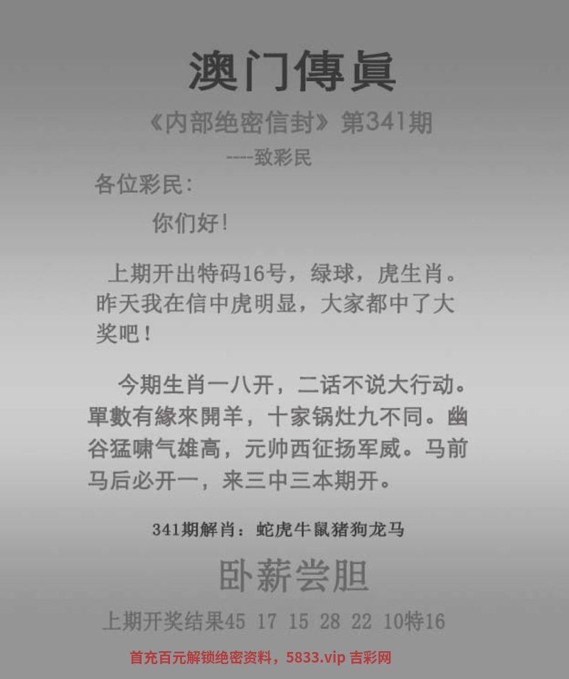 | 341期: 26333澳门玄机内幕三连肖必中 | |||